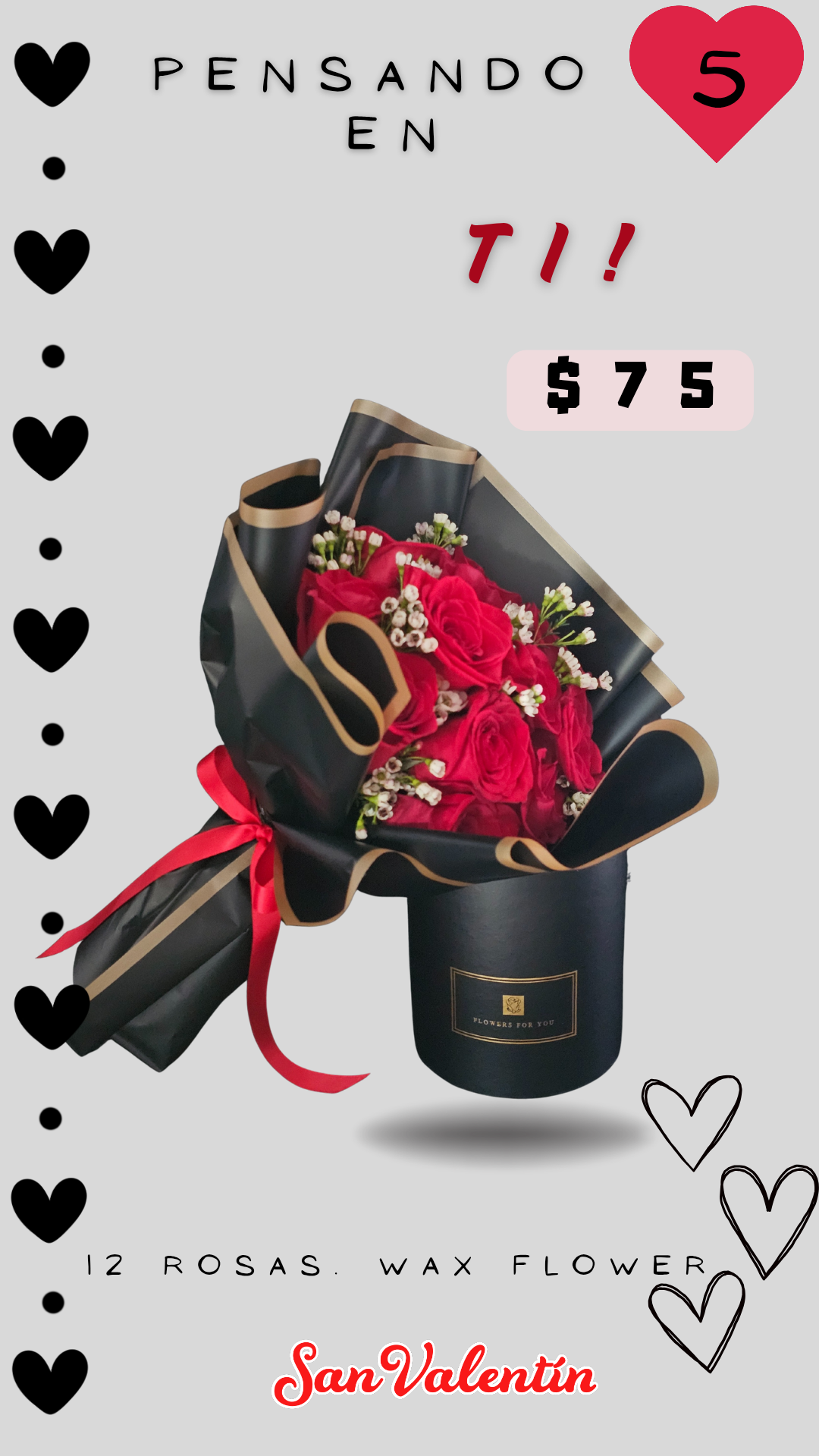 HERMOSO Y ROMANTICO BOUQUET COMPUESTO DE UNA DOCENA DE ROSAS ROJAS Y FOLLAJE WAX FLOWERS